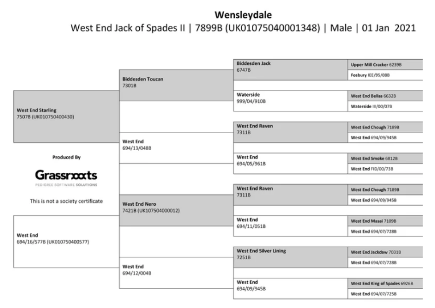 1/2 brother to "West End 1624B" & "West End Drongo"